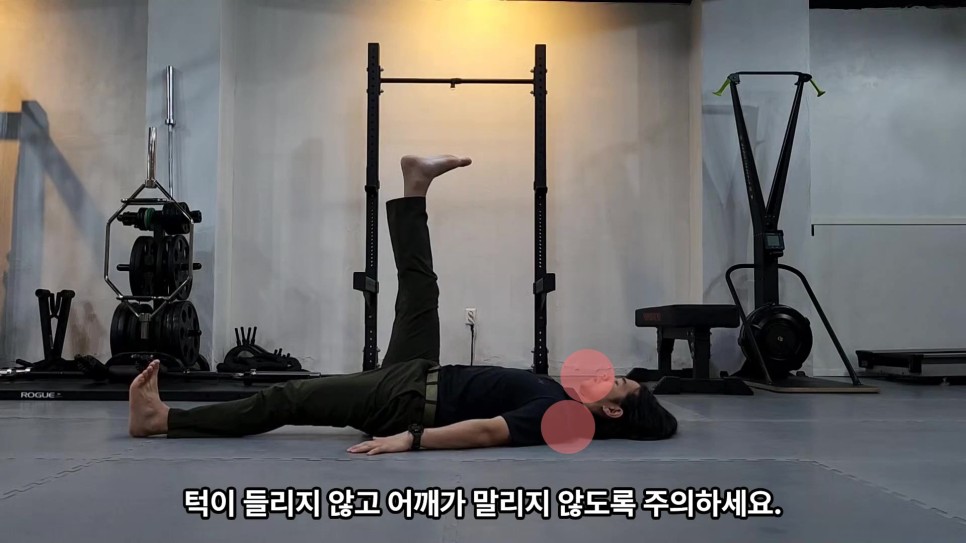 - 턱이 들리지 않고 어깨가 말리지 않도록 주의 합니다.