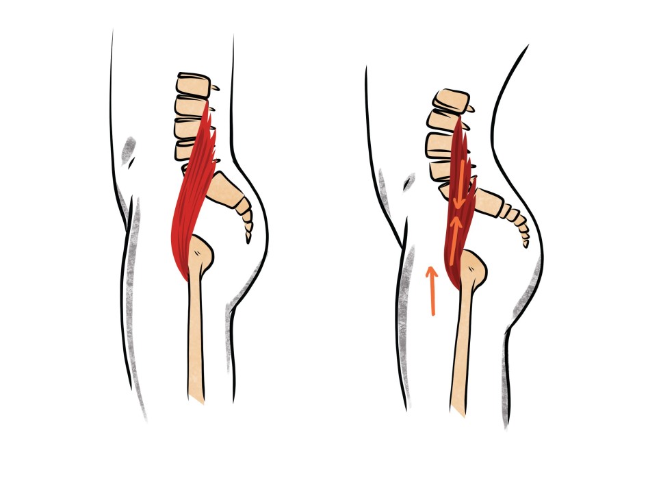 요즘 많은 분들에게서 볼 수 있는 골반의 전방 경사는 고관절 신전근과 복근이 약하거나 고관절 굴곡근(장골근, 대요근, 대퇴직근)이 팽팽해지면서 골반이 앞뒤로 기울어지는 것을 말합니다. 이는 허리에 과도한 압력이 가해지고 햄스트링에 부담이 가중되죠. 고관절 신전이 부족하면 허리에서 보상 작용이 일어나 통증과 부상을 유발할 수도 있습니다.