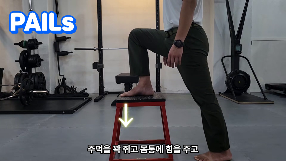 영상에서는 의자에 발을 올리고 하지만 반무릎 서기 자세 또는 앉아서 발바닥을 당긴 자세에서 해도 됩니다.