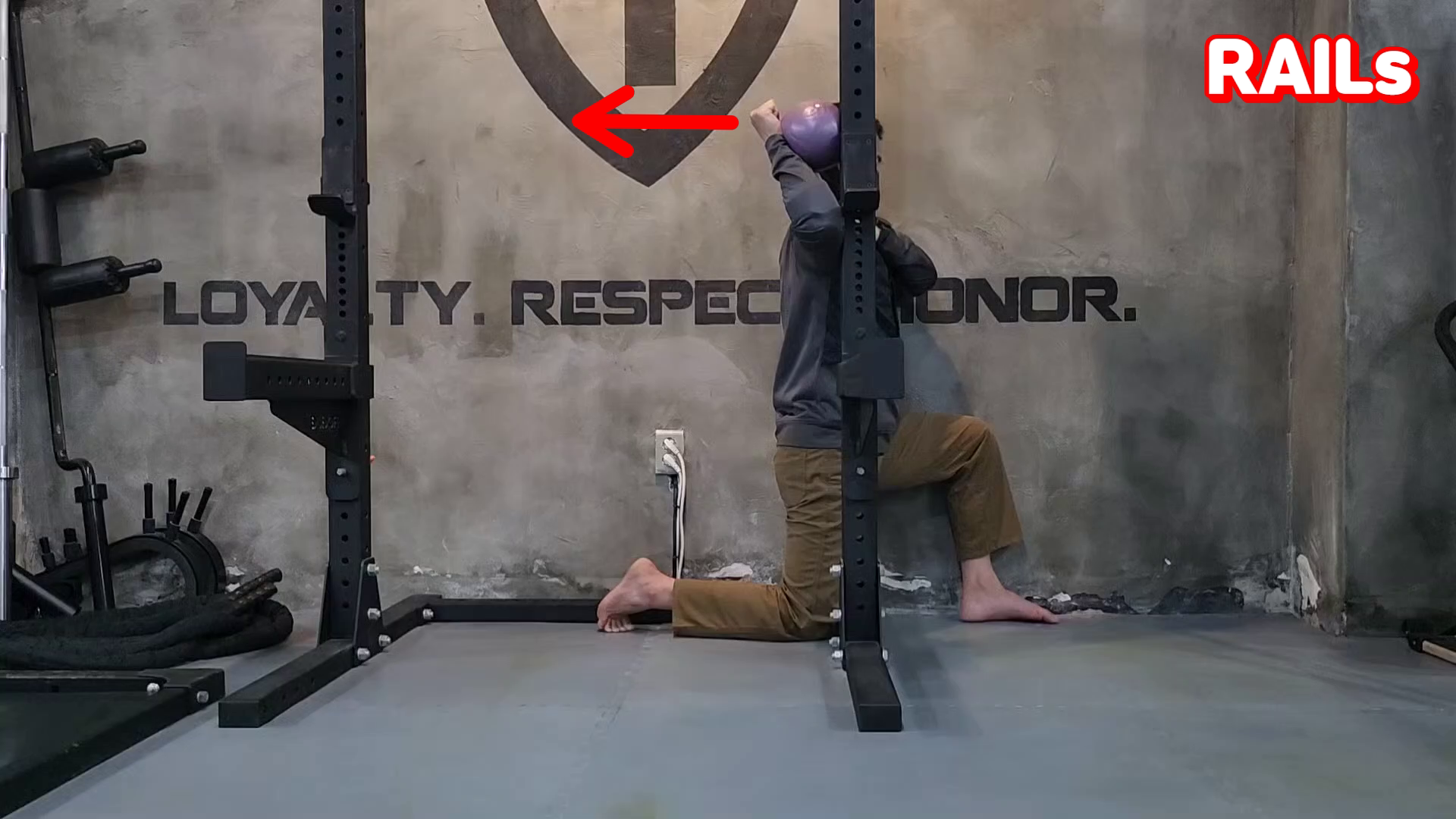 두 번째 동작(RAILs)는 위팔뼈를 밖으로 돌려 주먹이 공에서 멀어지려고 힘을 줍니다. 20초동안 점진적으로 강한 힘을 줍니다.