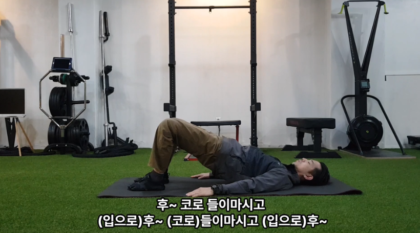 운동 중에는 계속 배에 힘을 주고 있어야 합니다. 잘 안 되는 분들은 아래 링크를 참고해보세요.