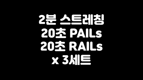 2분 스트렝칭 후, 20초 PAILs(쉬운 방향)를 하고 20초 RAILs(어려운 방향)를 합니다.