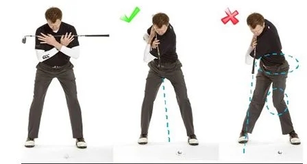무릎을 안쪽으로 구부리거나 허리를 통해 회전 하려고 하죠. 그리고 팔을 구부려 백스윙을 하기도 합니다.